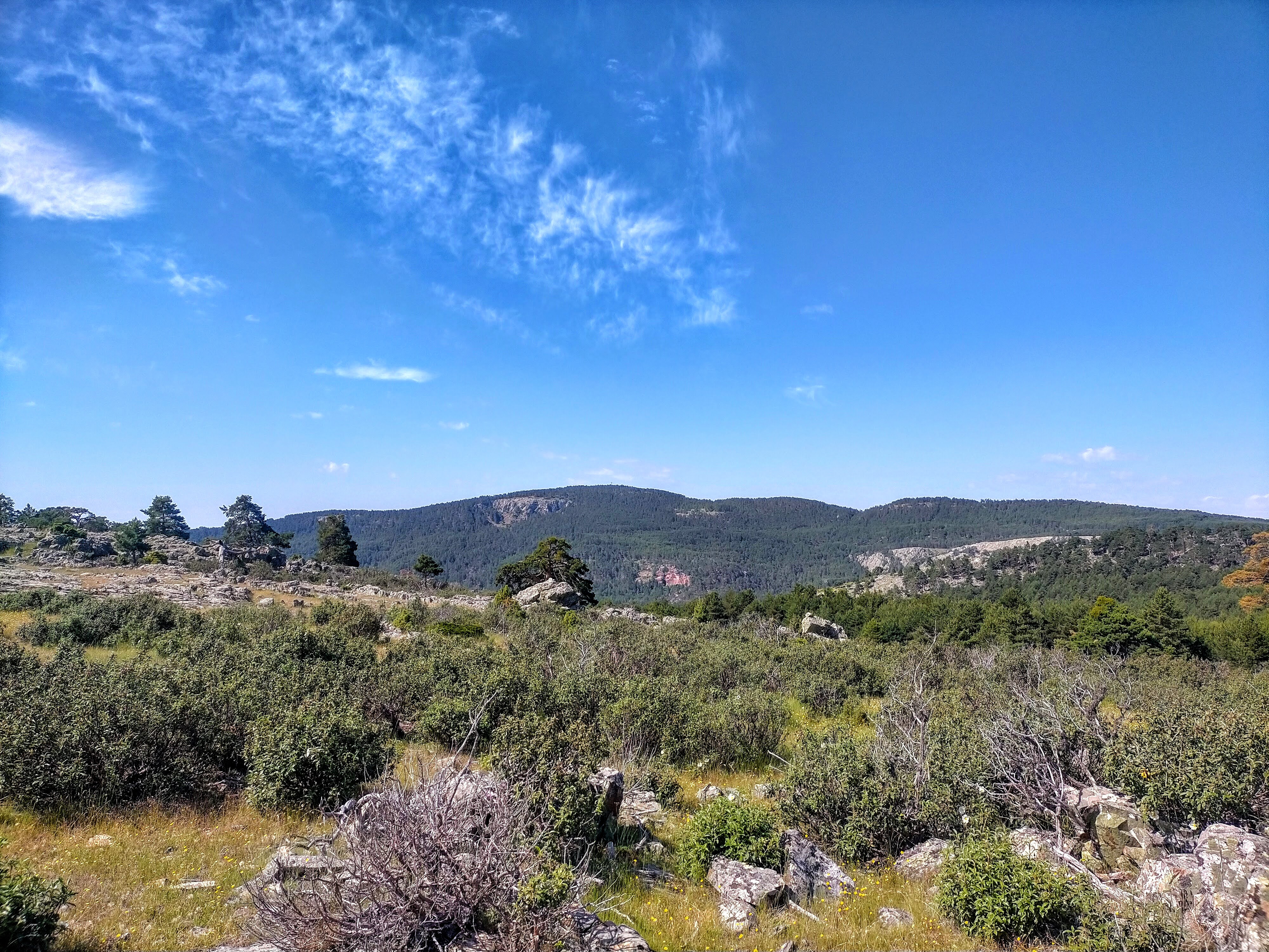 Circular por el corazón de los Montes Universales turolenses, ascendiendo a una de sus cimas más altas, Peñablanca, en el término municipal de Noguera de Albarracín. La ruta, atraviesa el núcleo central de esta modesta sierra partiendo de Bronchales, siempre a la sombra de los densos pinares que cubren todo el macizo.