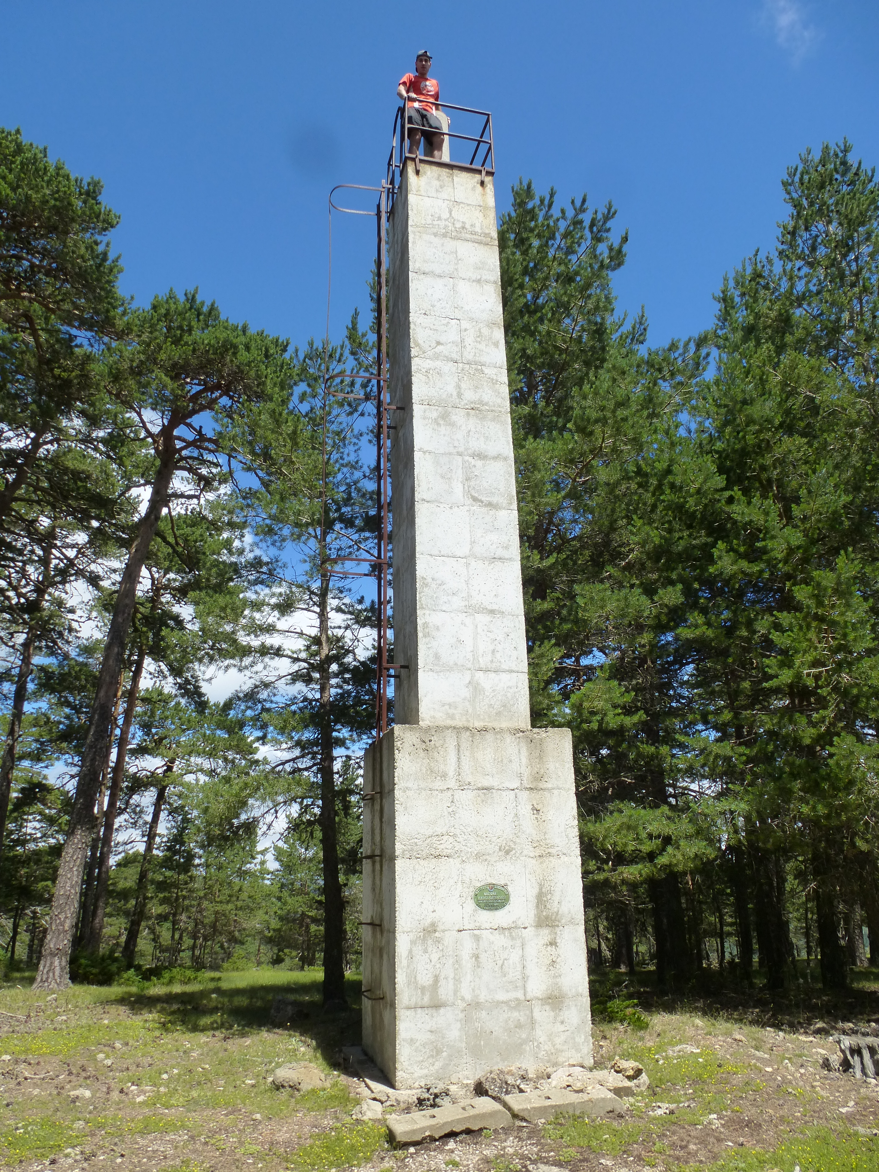[…] Alcanzamos la cima donde encontramos un vértice geodésico, un buzón con un libro de firmas y los restos de una torre de vigilancia. Sorprende ver la gente que sube al pico (y firma en el libro), es bastante más de la que hubiera pensado… Prácticamente todos los días del verano recibe visitas y eso que no es un monte muy conocido. Cabe destacar que este monte no tiene vistas desde la cima, pues está cubierta de abundantes pinares, algo bastante normal en la zona que también ocurre en el cercano pico de Peñablanca. […]