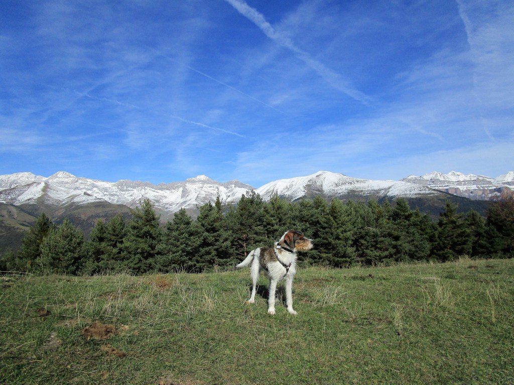 Dejaremos a mano izquierda un desvío a Linás de Broto que no debemos tomar. Además, estaremos atentos para dejar la pista a mano derecha y tomar un sendero que sigue la amplia cresta del cordal y evita hacer más kilómetros por la aburrida pista. Este sendero está un poco sucio en algunos tramos con ramas caídas y restos de algún desbroce, pero se sigue bien.