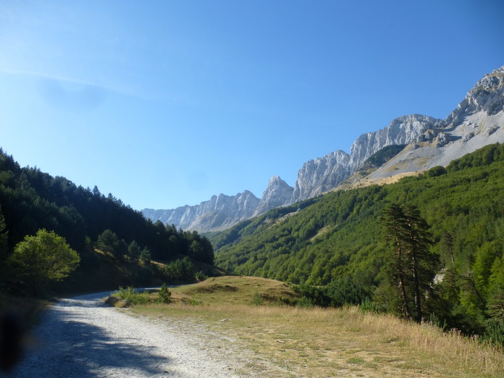 A los 3 kilómetros, en la cota 1100, vamos saliendo del bosque de forma progresiva y los claros nos dejan ver el paisaje que nos rodea: colinas de diferentes alturas, todas ellas cubiertas por bosques y praderas verdes, muy verdes.