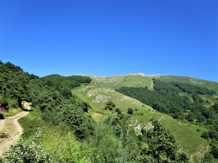 La pista zigzaguea y remonta metros bajo la sombra de las hayas. Tiene algunos atajos por senda que permiten ahorrar unos metros de distancia y que hacen que el camino gane en belleza. Nosotros tomamos todos los atajos que vimos.