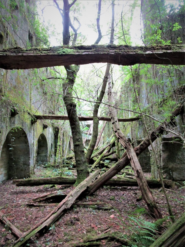 Llegaremos pronto a la segunda papelera abandonada, la más grande y espectacular: la fábrica de Fontán. Tiene una estructura muy grande y un interior que se ha venido abajo, llenando toda la estancia de vigas de madera ya recubiertas por el musgo. Es un lugar muy bonito y evocador.