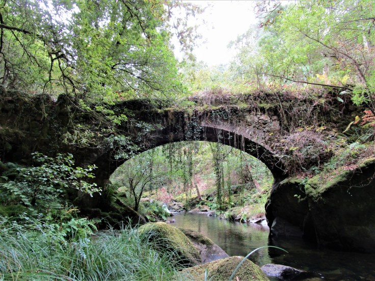 Este bonito tramo dura unos 500 metros. Pronto nos toparemos con un par de puentes, uno más moderno y otro de origen medieval. Junto a ellos, veremos el desvío a mano izquierda que nos lleva a abandonar definitivamente el cauce del río Vilacoba y comenzar la subida al monte Culou para cambiar de valle y alcanzar el del río San Xusto.