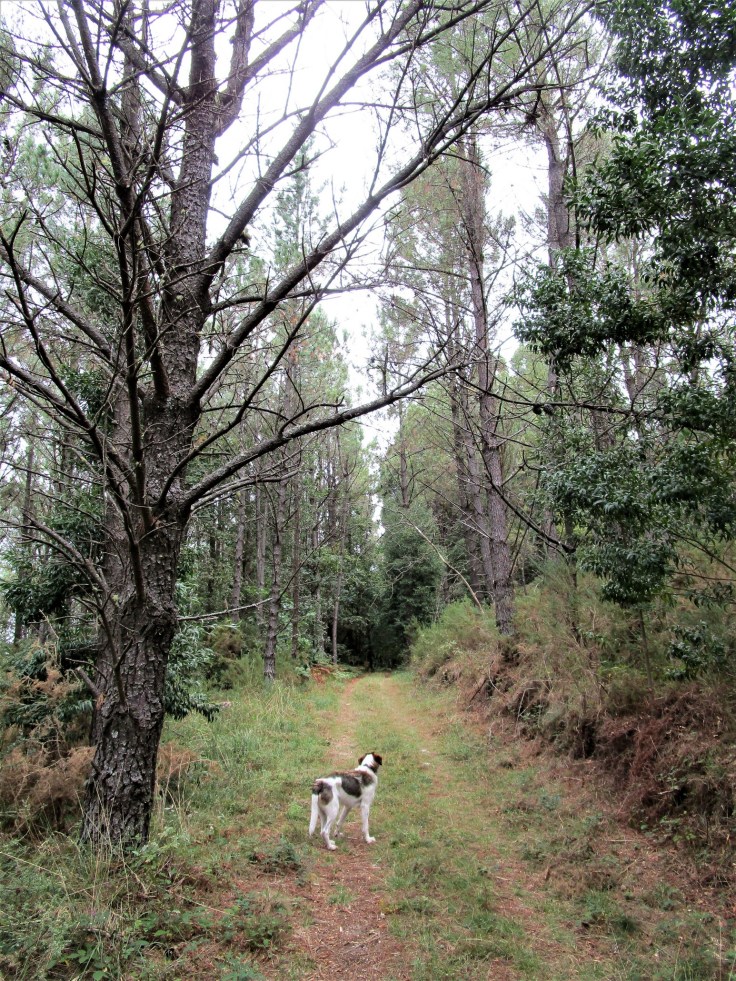 La subida no llega hasta la cima del monte Culou, de 511 metros. Nos quedaremos sobre la cota 400, pero es la subida más importante del día. Se realiza por cómodos caminos y pistas. La belleza del entorno disminuye y mucho, pero sigue siendo un camino bastante agradable.