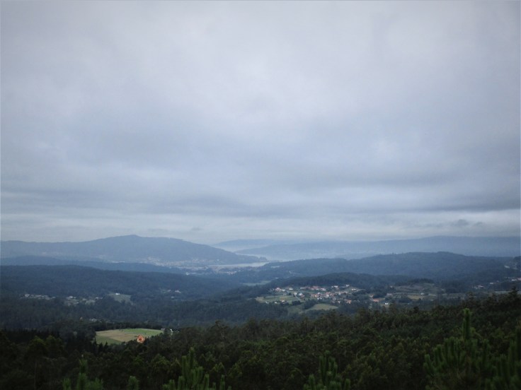 En algún punto concreto las vistas se abren hacia la ría de Noia. Por desgracia, el día está regular y los cielos completamente cubiertos de nubes, lo que resta mucho interés a las vistas. Una pena.