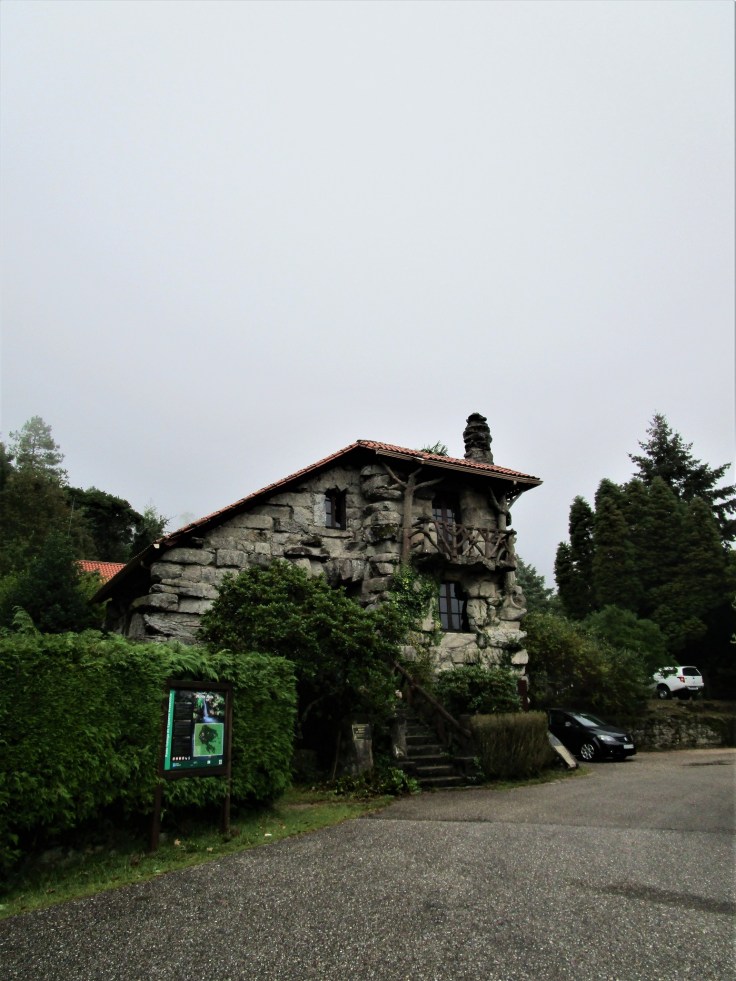 El sendero botánico nos deja en la casa forestal del Monte Aloia, utilizada como Centro de Interpretación del Parque Natural. Pasaremos junto a ella y tomaremos la pista asfaltada que se dirige a la cima del monte. Caminaremos por ella unos cientos de metros hasta coger un camino que parte a mano derecha.