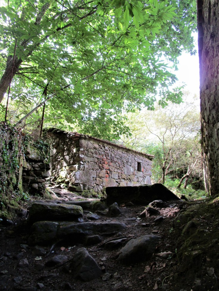 En esta segunda parte de la senda, el paisaje se vuelve más abrupto y salvaje. Hay algunos saltos de agua y, junto al arroyo, los molinos se van situando colgados en las laderas. Sorprende la cantidad de molinos que hay… pronto perderemos la cuenta.