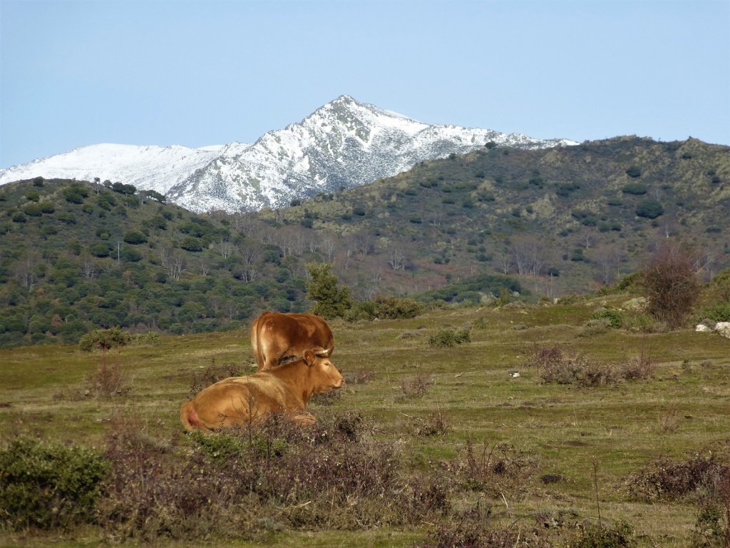 Foto de portada: Vacas pastando en las praderas de Colmenar de la Sierra con el pico Santuy (1.927 m) al fondo.