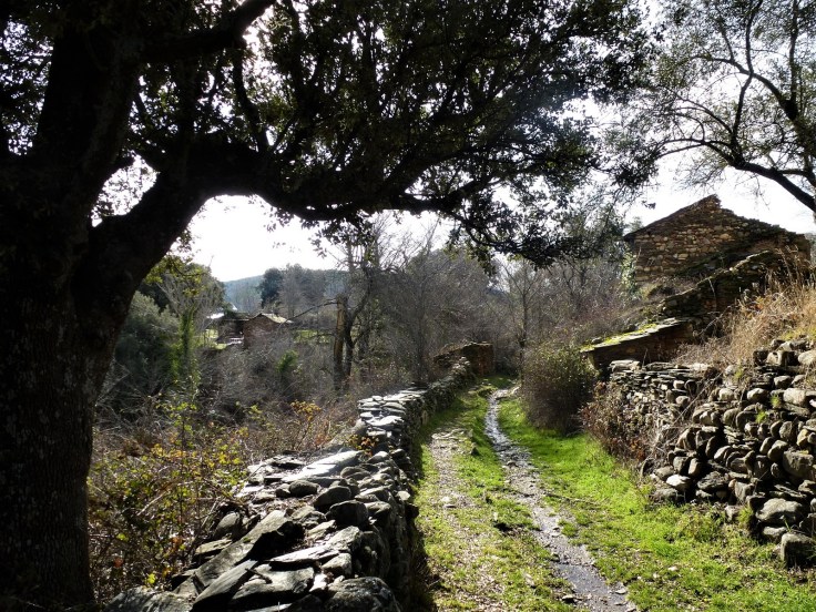 La senda desciende hasta cruzar un pequeño arroyo y vuelve a subir un poco hasta alcanzar las primeras casas de la aldea de Matallana.