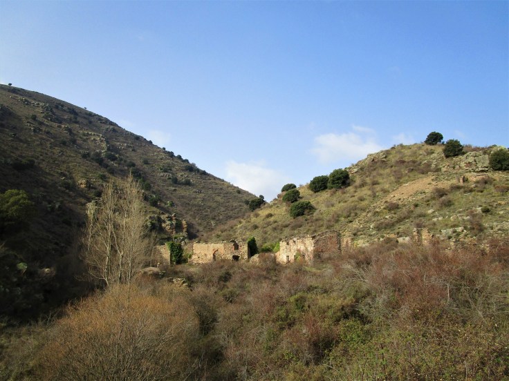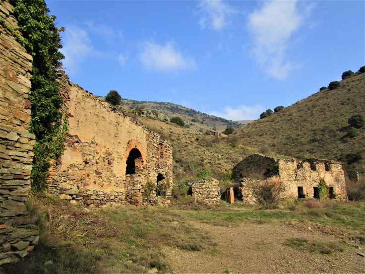 Pronto comienzan a aparecer en el barranco viejas construcciones ya en estado de ruina. Son las diferentes instalaciones de las minas de Valdeplata que se han explotado desde la época de los romanos y que se mantuvieron en activo hasta comienzos del siglo XX, de ahí que se conserven todos estos restos en relativo buen estado.