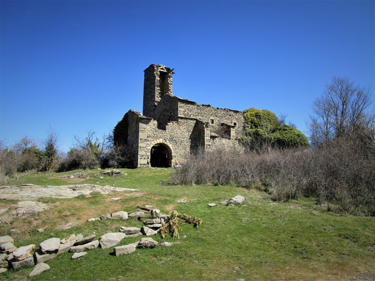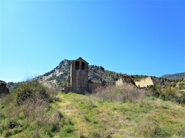 Pasaremos junto a la pardina y seguiremos bajando hasta dar con una pasarela metálica por la que cruzaremos de nuevo el río Flumen. Al otro lado, aparecerá enseguida el despoblado de Santa María de Belsué cerrando así la circular. Este despoblado también está arruinado aunque la estructura de la iglesia sí se mantiene en buen estado.