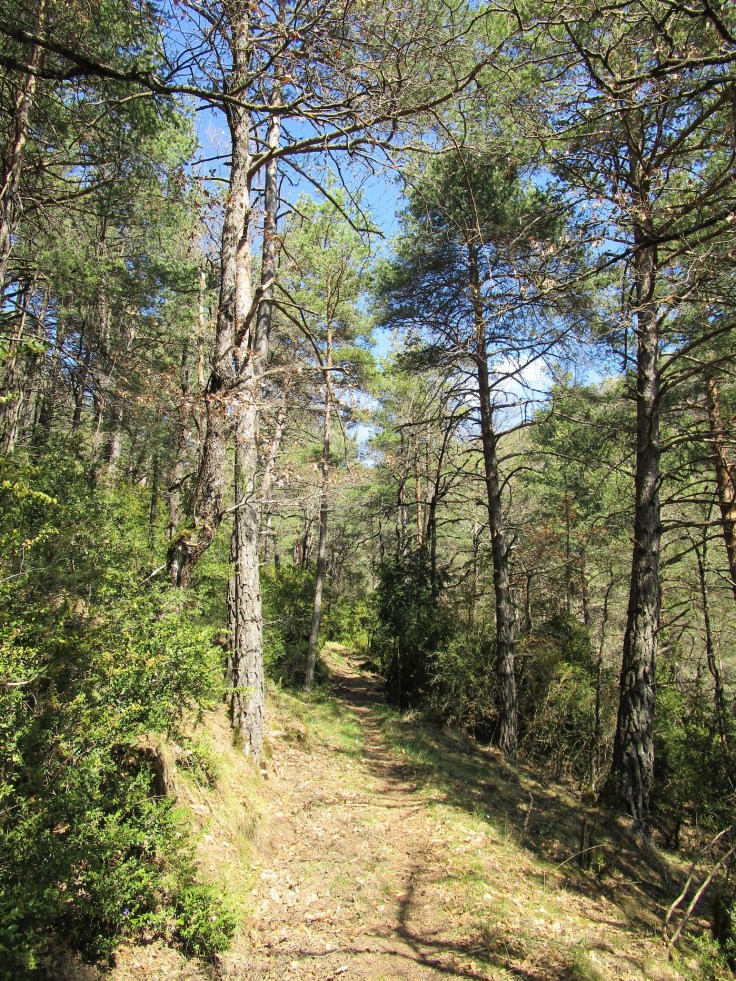 Alcanzamos el collado y bajaremos levemente por una zona de frondosos bosques. En apenas un kilómetro y tras otra leve subida alcanzaremos un segundo collado, el collado Barbero (1.238 m), que casualmente tiene la misma altura que el de Santa Coloma.