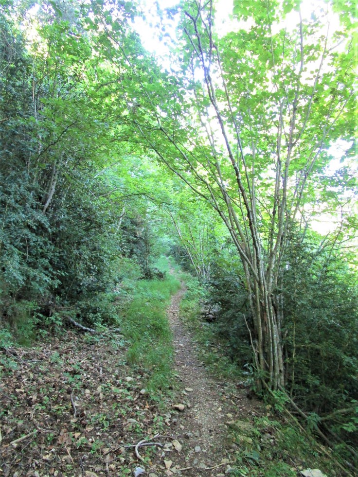 Ahora el camino llanea e incluso pierde metros de desnivel. Sin embargo, no son los momentos más cómodos de la ruta ya que la vegetación se «come» el camino por momentos. No hay zarzas ni ortigas, pero la cantidad de hierba hace que no podamos ir muy rápido y tengamos que ver con cuidado dónde ponemos el pie…