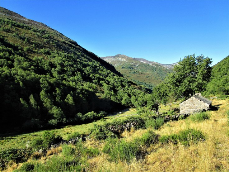 Sobre la cota 1350, encontraremos una fuente junto al camino (fuente de las Chávanas). Poco después, cruzaremos el río por un pequeño puente y seguiremos avanzando por la orilla contraria ya con el fondo del valle a nuestra vista. Pasaremos junto a unas cabañas (Braña de Salentinos) y encontraremos otra fuente más, fresquísima, que vendrá muy bien para avituallar antes de comenzar el tramo más duro de la jornada.