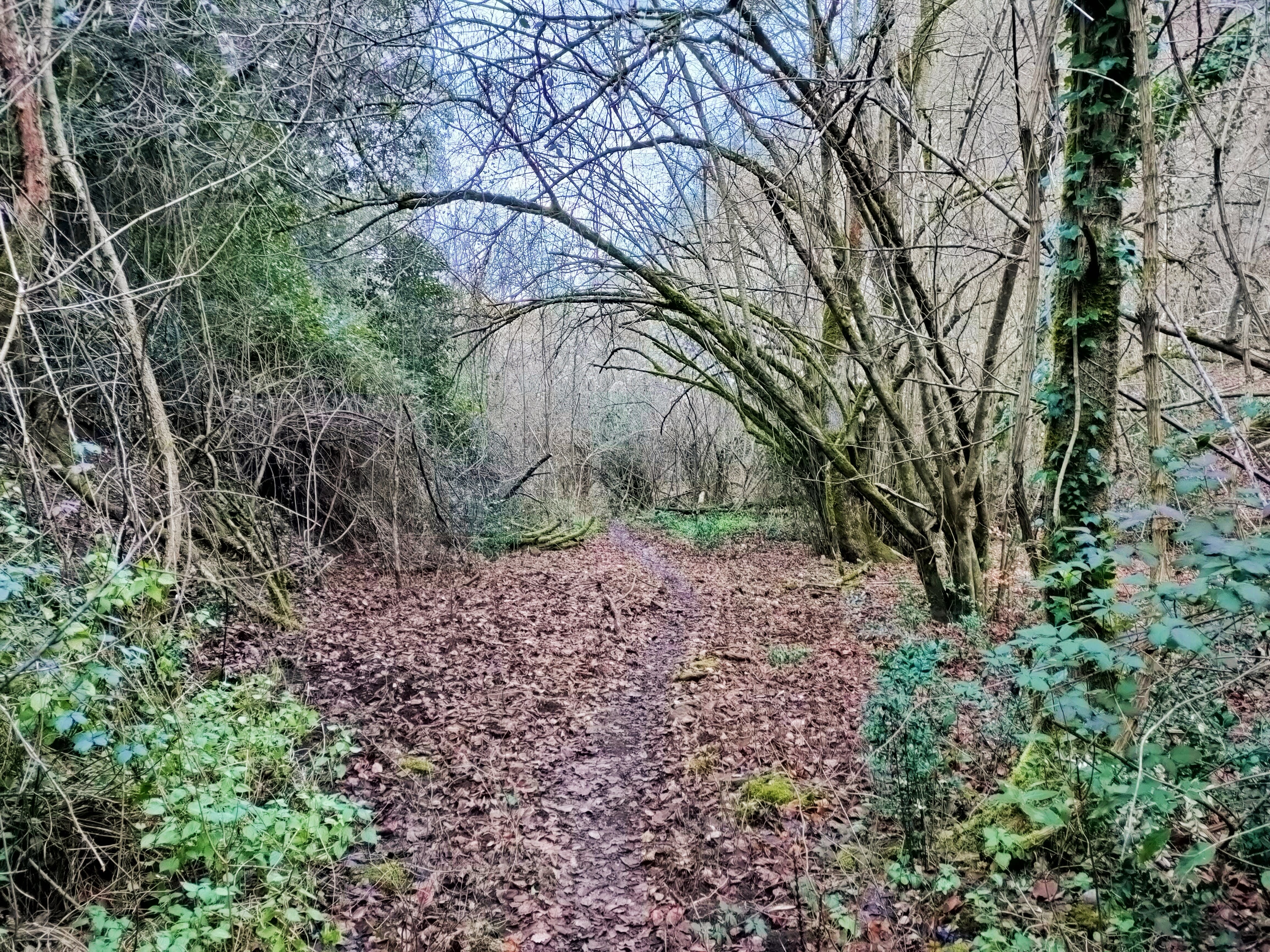 Alcanzamos así la pista que discurre paralela a la riera o barranco. Bajaremos por esta pista unos cientos de metros para después girar a la izquierda por un camino amplio y bien marcado. Nos meteremos de lleno en la riera y pronto veremos la belleza del lugar. Es un barranco muy umbrío y profundo donde la vegetación es la gran protagonista.