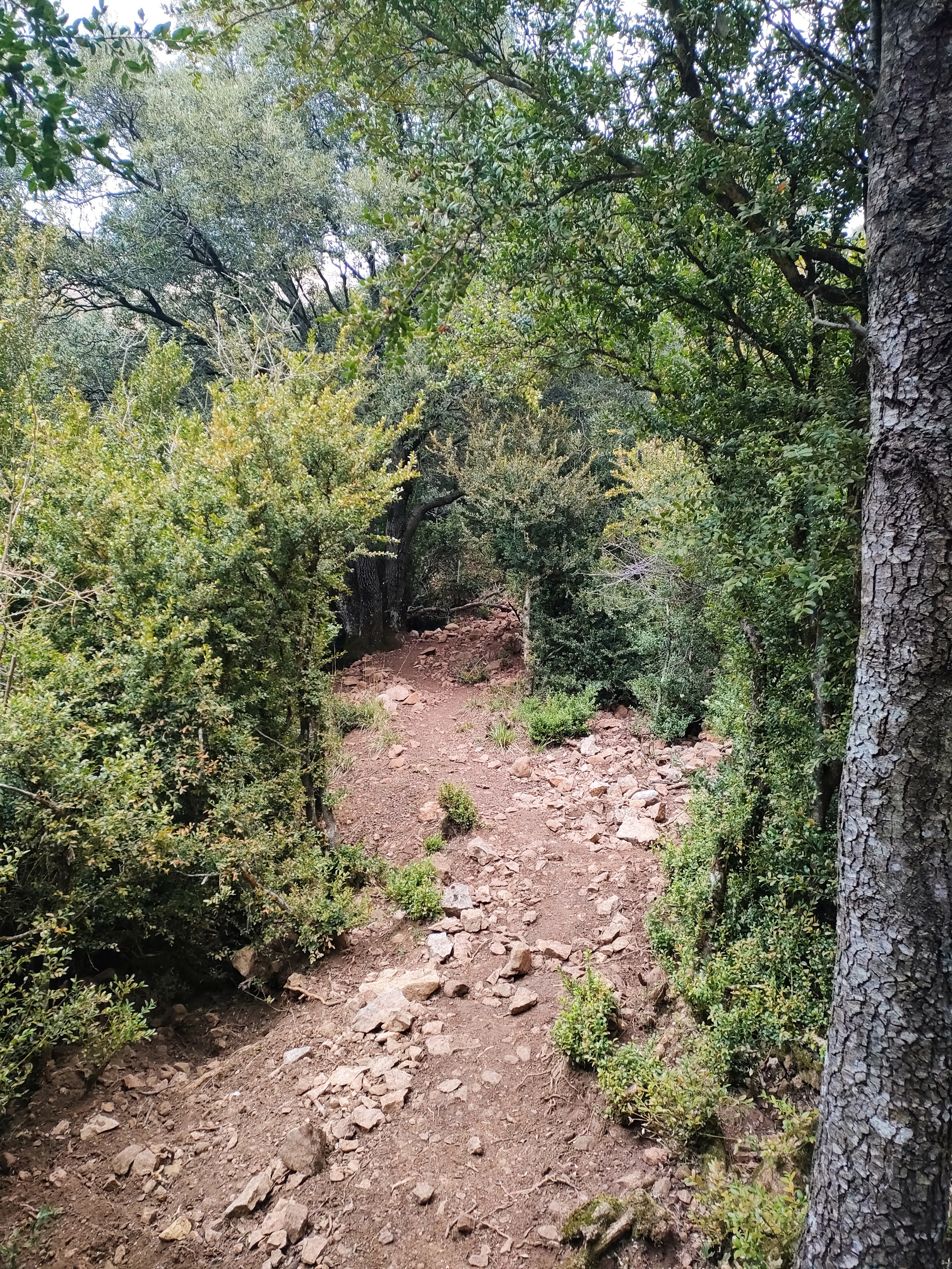 Una dura subida, aunque corta, nos deja en el tercer colladete y, aquí sí, comenzaremos a bajar por el sendero de Valleclusa. Al principio es empinado pero después se vuelve más cómodo. Atraviesa un bosque muy bonito, es una gozada…