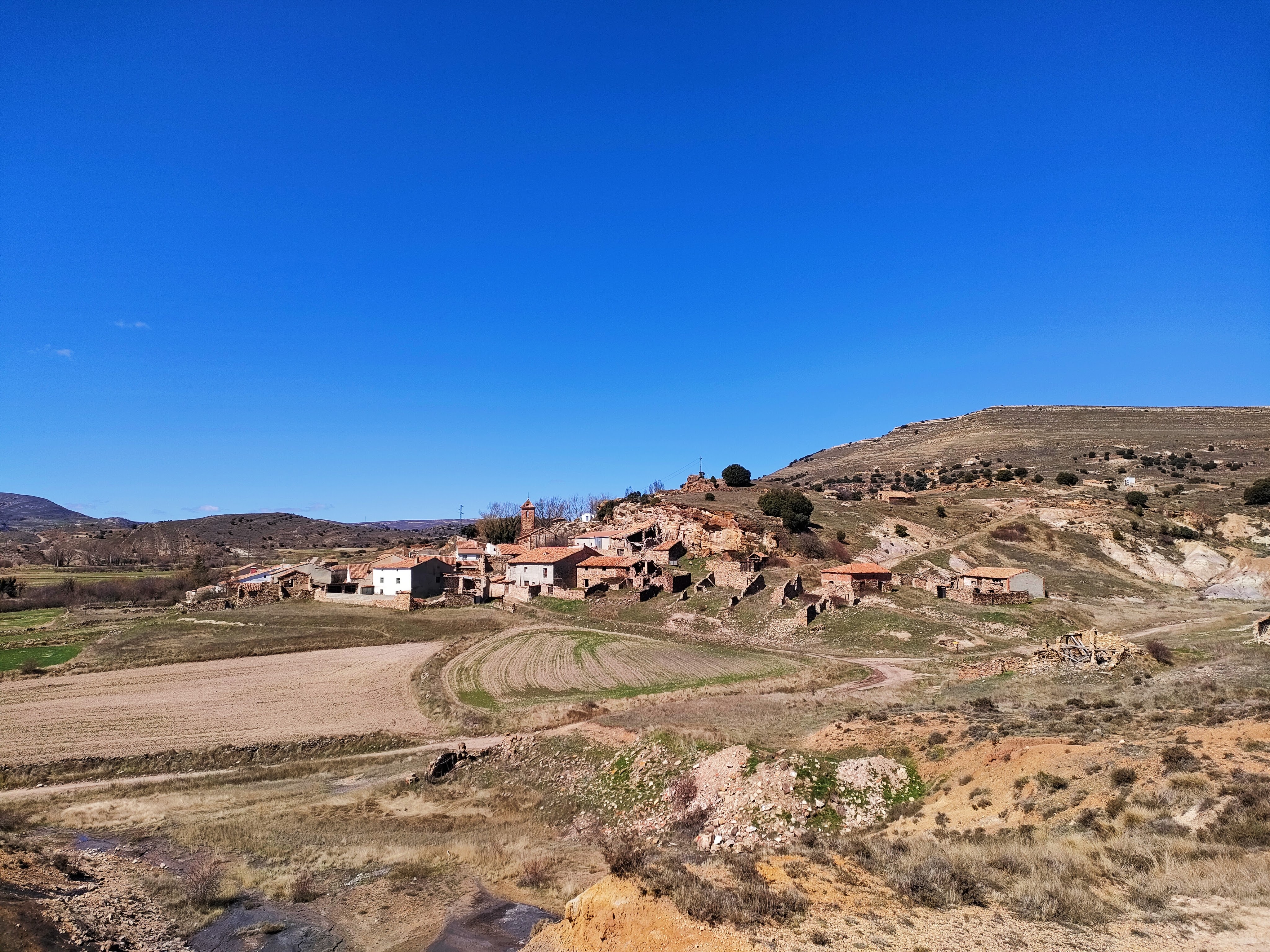 Para llegar a este pueblo, primero subiremos por sendero hasta un collado y allí ya conectaremos con una larga pista que atraviesa el páramo y que nos dejará en sus inmediaciones. Poco antes de alcanzar el pueblo, cruzaremos el río de la Rambla por un puente que atraviesa un pequeño estrechamiento.