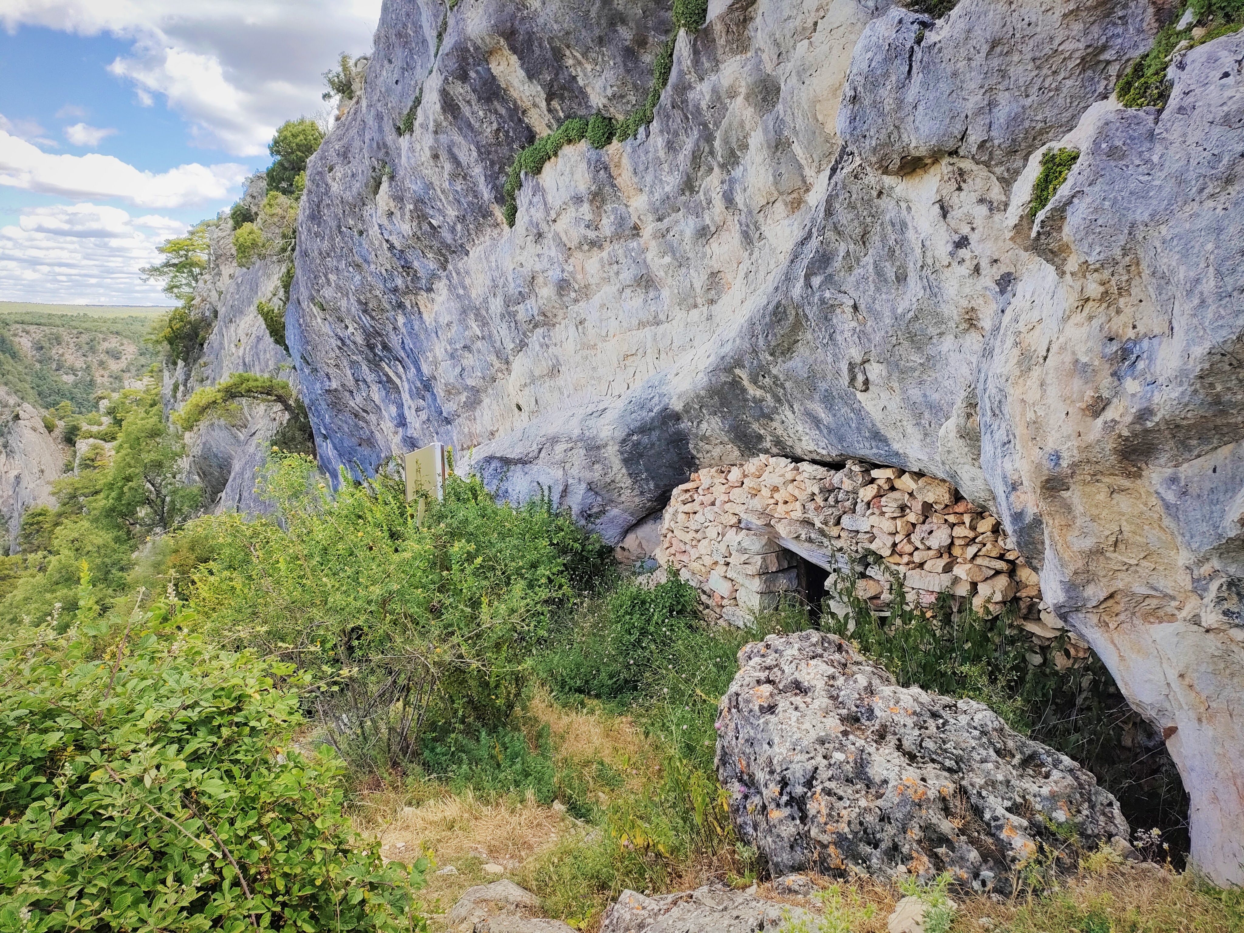 Continuaremos en leve subida para alcanzar el canal de agua antes mencionado, que discurre tapado. El camino ahora avanza paralelo a él durante un rato hasta dar con el desvío a mano izquierda que sube a la Cueva del Armentero y su mirador.