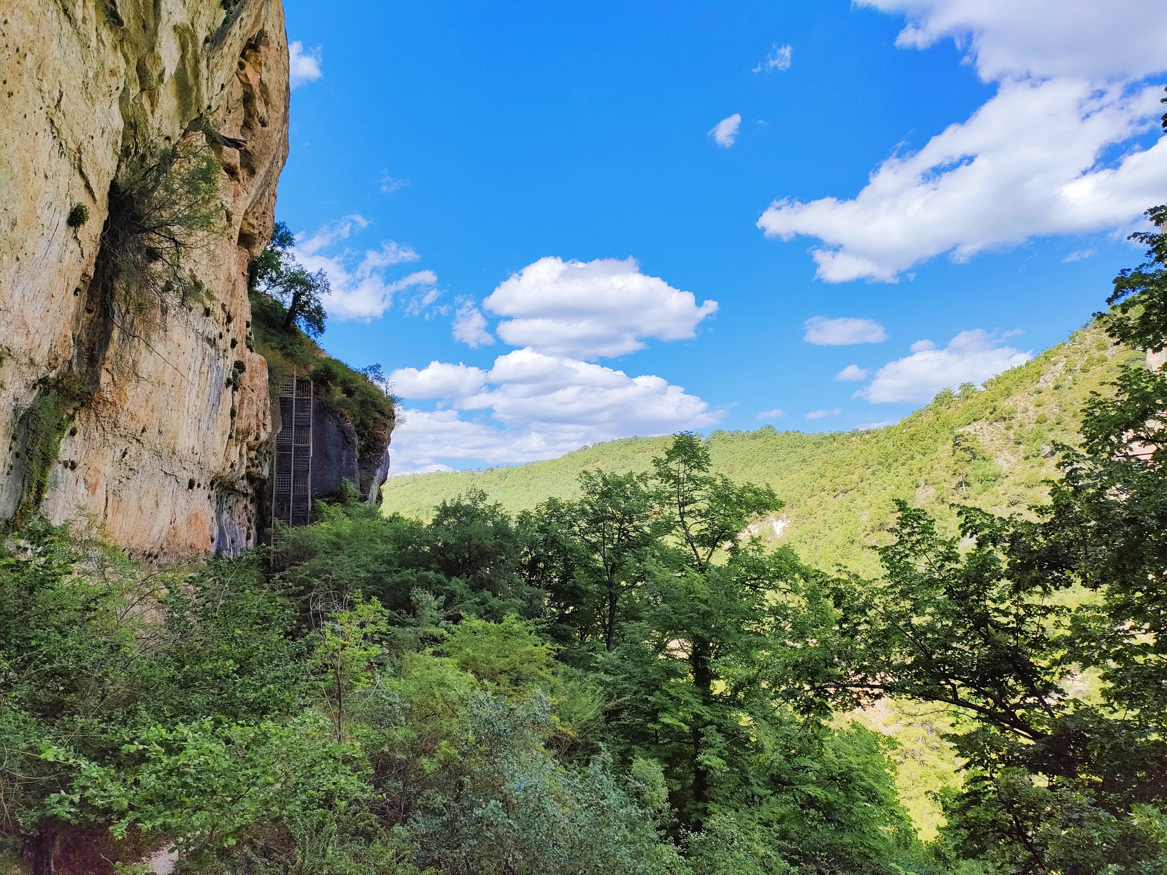 Unos metros más adelante de la pasarela, veremos la impresionante estructura metálica que permite subir a la Cueva de la Ramera. El acceso está cerrado de manera permanente por labores de mantenimiento, una pena…