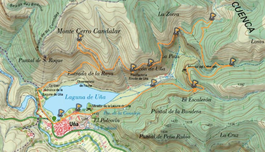 La ruta de hoy traza una circular a la laguna de Uña por la parte alta de los escarpes, de esta manera, lograremos unas panorámicas inmejorables. Para subir a lo alto del escarpe utilizaremos un sendero que, a través de un zig-zag muy marcado, gana desnivel de manera sencilla y es conocido como El Escalerón. Para volver al pueblo, en cambio, lo haremos por otro famoso sendero: La Raya, un camino colgado o faja muy fotogénica que no nos dejará indiferentes.