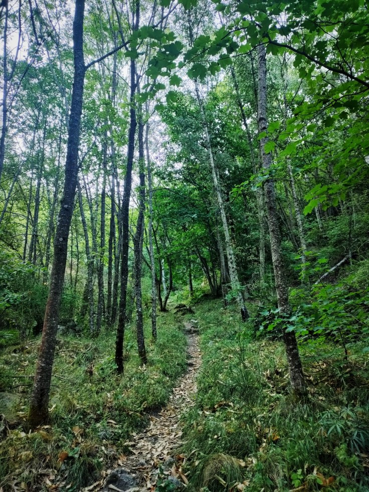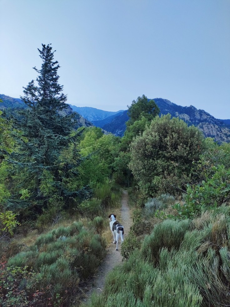 Siempre siguiendo la senda, iremos subiendo por un bosque muy bonito, con mucho sabor mediterráneo. La ascensión es cómoda pero no da tregua, es sostenida y continuada. Hay tramos de bosque muy bonitos y frescos y otros más abiertos y soleados. En general, se sube muy bien.