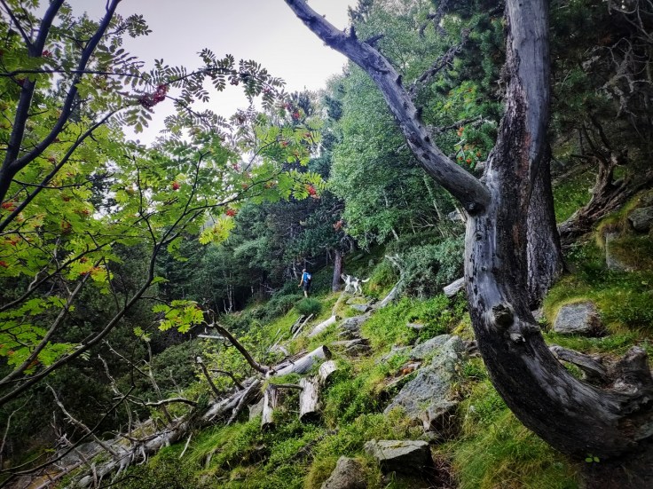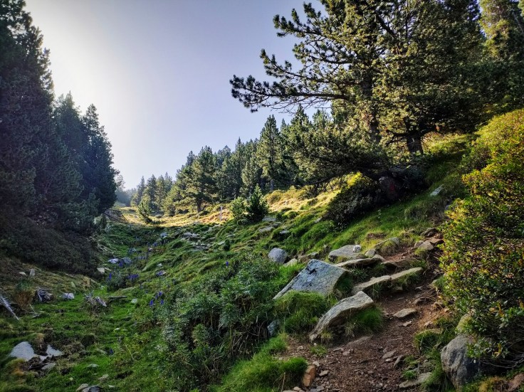 De momento, seguiremos subiendo por el GR-10 al ya visible Coll Mitja. Este tramo de subida es muy agradable y va alternando tramos de pradera con otros de bosque. El sendero está muy bien marcado y se sube fácil.