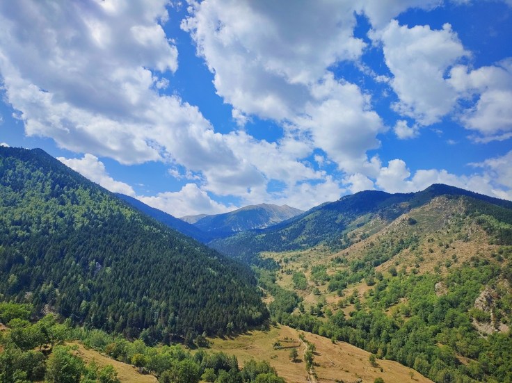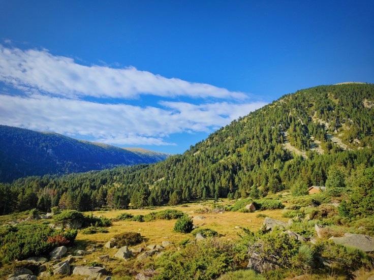 Ya al otro lado, comienza la subida por la larga Ribera de l’Alemany. Seguiremos el GR-10 y subiremos de manera constante y tendida por un valle muy agradable. Sorprende el verdor de la zona, imagino que fruto de las tormentas que caen todas las tardes…