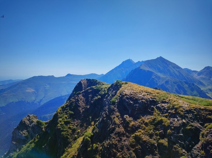 En la cima las vistas se abren hacia el valle de Lesponne. Frente a nosotros, el Pic de Montaigu, uno de los referentes del Bigorre al estar bastante separado de la cadena axial y dominar todo el somontano francés.