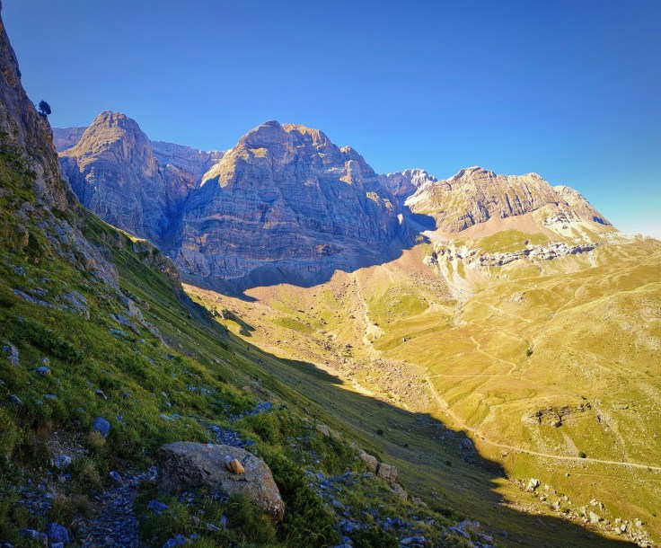Ahora trazaremos una cómoda diagonal que nos llevará al valle colgado de Tendeñera, justo encima de la cascada.