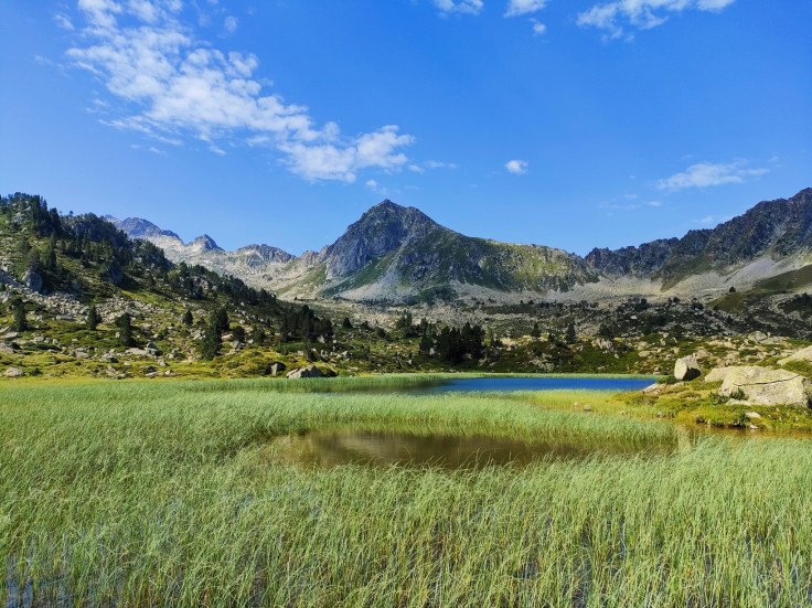 Enseguida encontramos un lago poco profundo y que llama la atención porque está lleno de juncos. Es el Lac Dera Yunco (2.100 m). Un poco más adelante, el camino se vuelve a bifurcar. A la izquierda, iremos al Lac de Tracens y si seguimos recto visitaremos el Lac Blanc y el Lac Nére. Yo tomé la segunda opción que es un poco más larga y complica un pelín la ruta ya que en el rodeo al Lac Nére encontramos varias zonas de grandes bloques.
