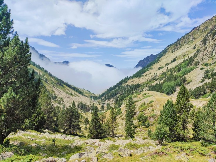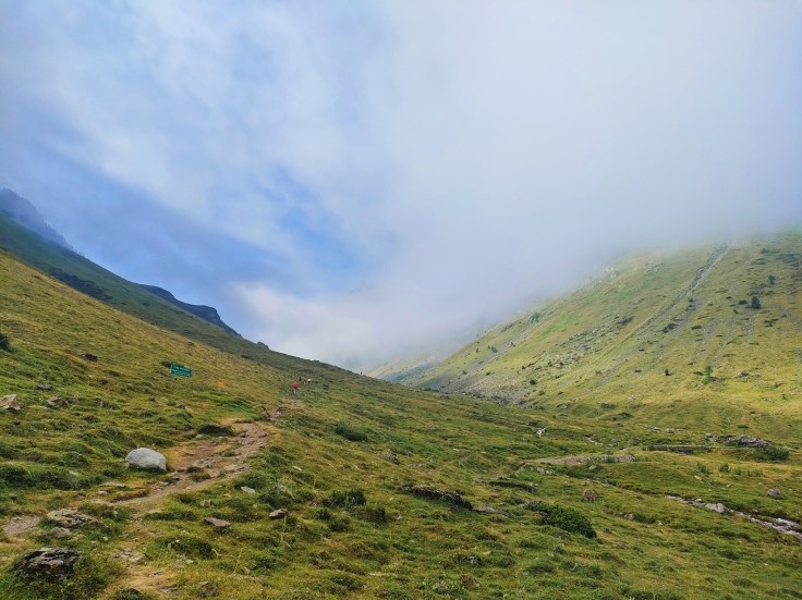 La niebla hace acto de presencia sobre la cota 2000 y ya metidos en la nube seguiremos bajando hasta el aparcamiento de Tournaboup. El descenso es largo por lo que recomiendo guardar fuerzas o hacer una paradita en la cabaña de Aygues-Cluses para afrontarlo con garantías.