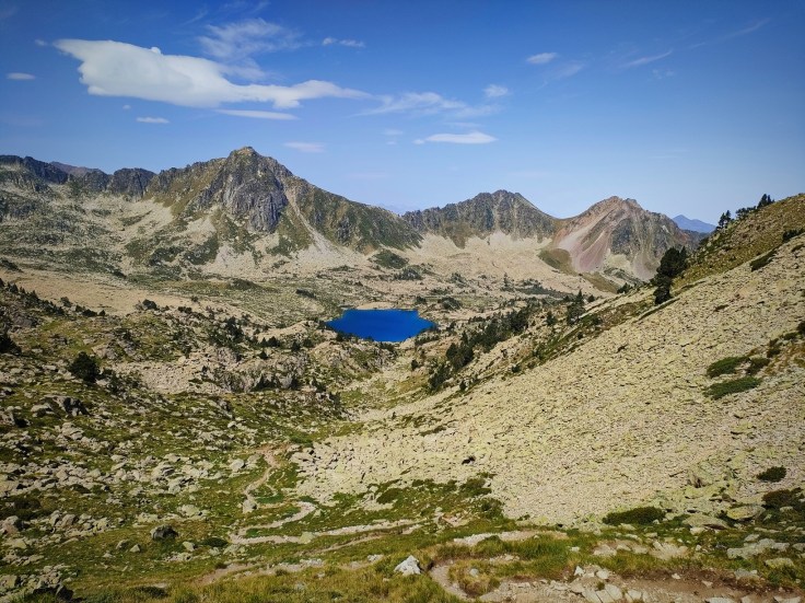 Tras pasar un rato en la cima, bajamos y alcanzamos de nuevo el collado. Desde aquí nos espera un largo descenso a Tournaboup por un camino muy bonito que discurre por varios lagos.