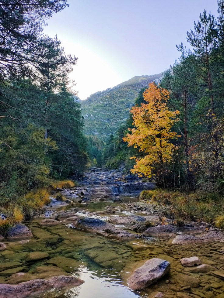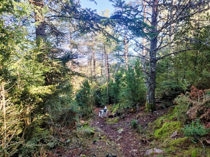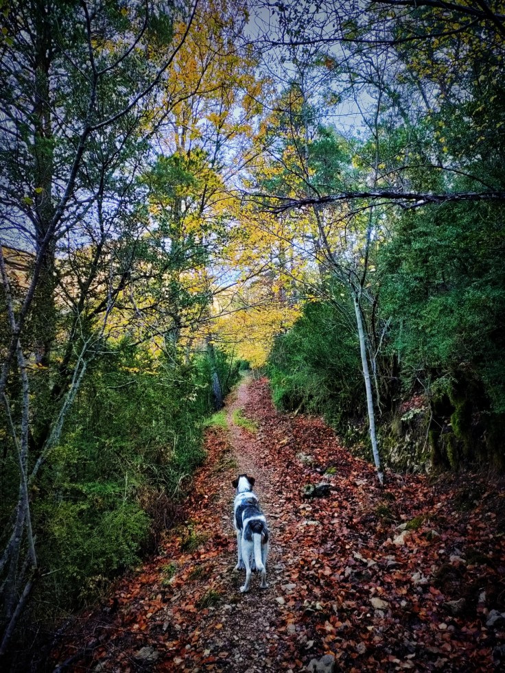 El camino zigzaguea y gana altura rápidamente. En la subida encontraremos hayas, pinos, bojes… Los colores otoñales todavía perduran pero ya ha caído mucha hoja. No obstante, el bosque está muy bonito y la subida es una gozada.