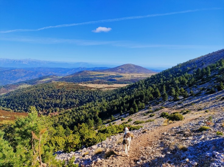 Alcanzamos el collado de Petreñales (1.561 m), vía principal que comunica la cara Norte con la cara Sur. Entraremos en una zona mucho más soleada y seca. Todavía predominan los bosques de pino pero pronto los cambiaremos por piedra y erizón.