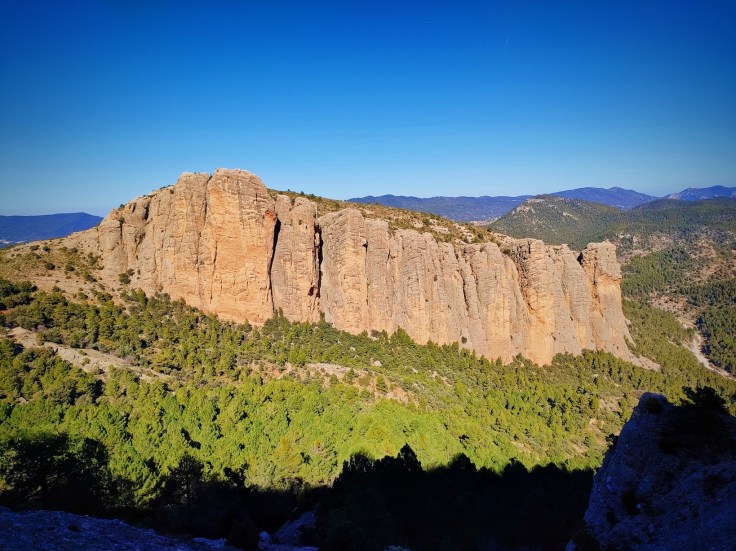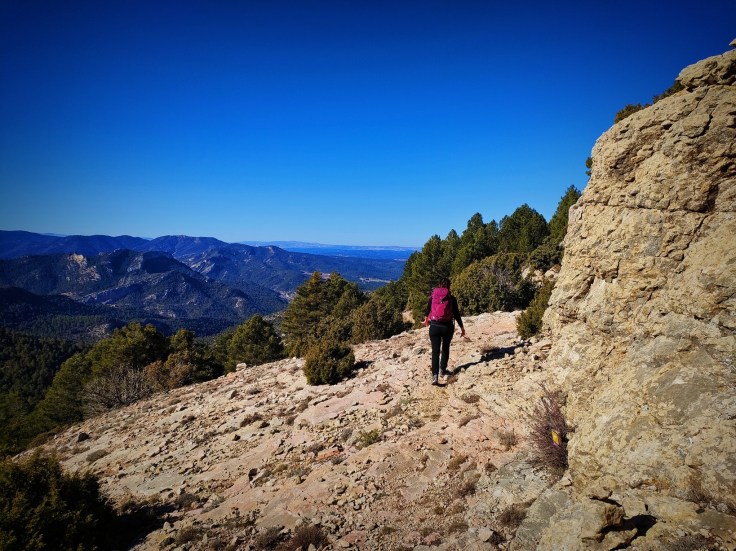 Desde este punto descenderemos hacia las Rocas de Masmut obteniendo una panorámica impresionante de estas famosas rocas y también del Tossal de Hereu, montaña más alta de la zona, que quedará unos kilómetros más al Este.