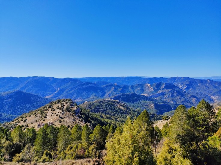 En la cima hay un vértice geodésico y un buzón de montaña. Nos detendremos un ratito disfrutando del maravilloso día de invierno que nos ha hecho y de las hermosas vistas. La panorámica es amplia y se pierde hacia el Sur, divisando ya las montañas del cercano Parque Natural de la Tinença de Benifassa.