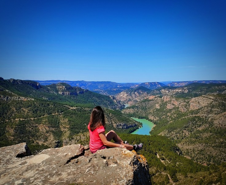 En la ruta de hoy caminaremos por el famoso sendero de los Cintos, un camino colgado que transita entre cortados y que se asoma al precioso Cañón del río Júcar. Una empinada subida bien equipada con cadenas nos dejará en lo alto de la Muela de Cortés (837 m), una amplísima meseta que cruzaremos para terminar alcanzando el Barranco de Huesca, por donde descenderemos de nuevo al pueblo de Cortes.