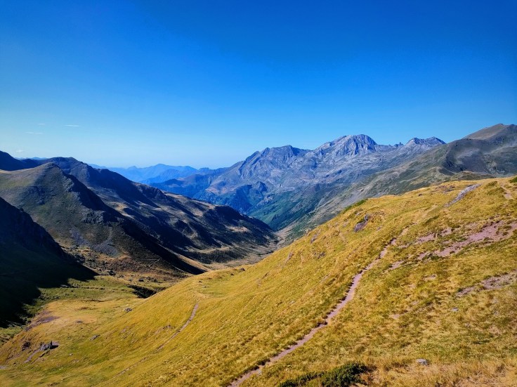 En el collado las vistas se abren hacia los valles de Sescoué y Larry. Este valle de Sescoué es un lugar bastante recóndito y alejado que conecta con el famoso Chemin de la Mature, lo que permite trazar alguna circular muy interesante aunque larga y con mucho desnivel.