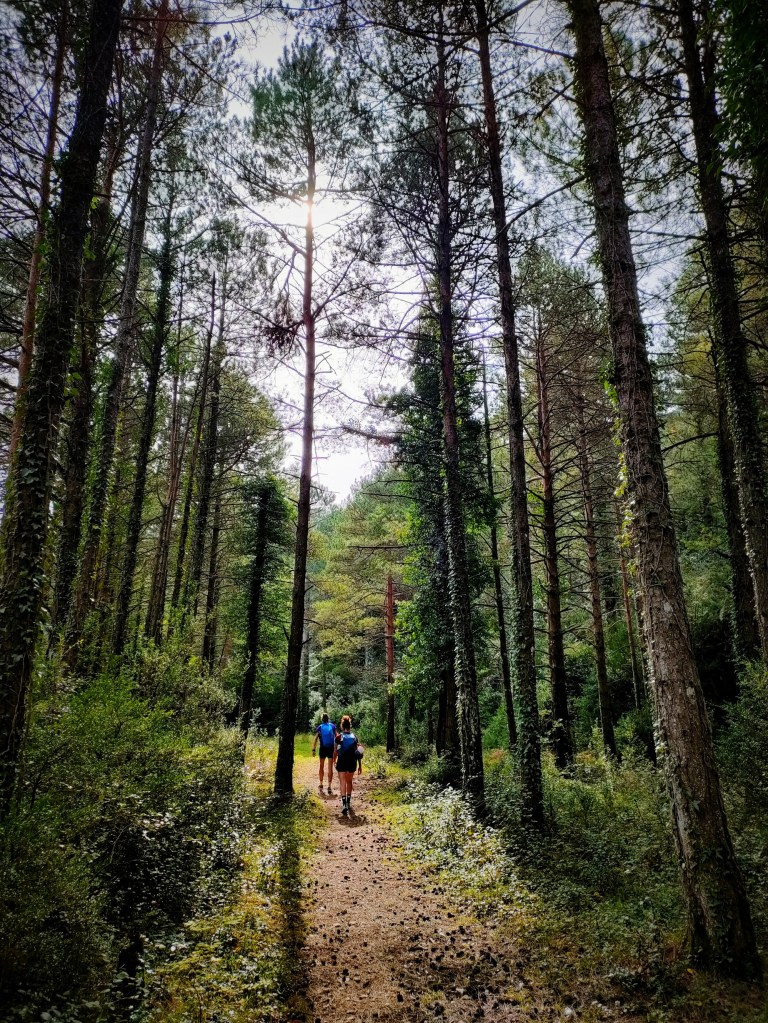 Pronto cambiaremos las vistas panorámicas por los bosques y seguiremos avanzando hasta alcanzar el refugio de Les Clotes (refugio libre).
