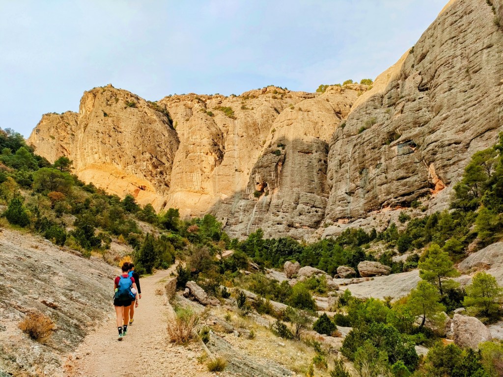 Alcanzaremos el Coll de Ganxo y empezaremos a bajar a Beceite, ya siguiendo de nuevo las marcas blancas y rojas de GR. La bajada es muy bonita, primero por terreno más abrupto y luego por un valle con varias masias. La pista del Parrizal nos dejará en Beceite, pueblo donde dormiremos, concretamente en el Albergue de Casa l’Aigua.