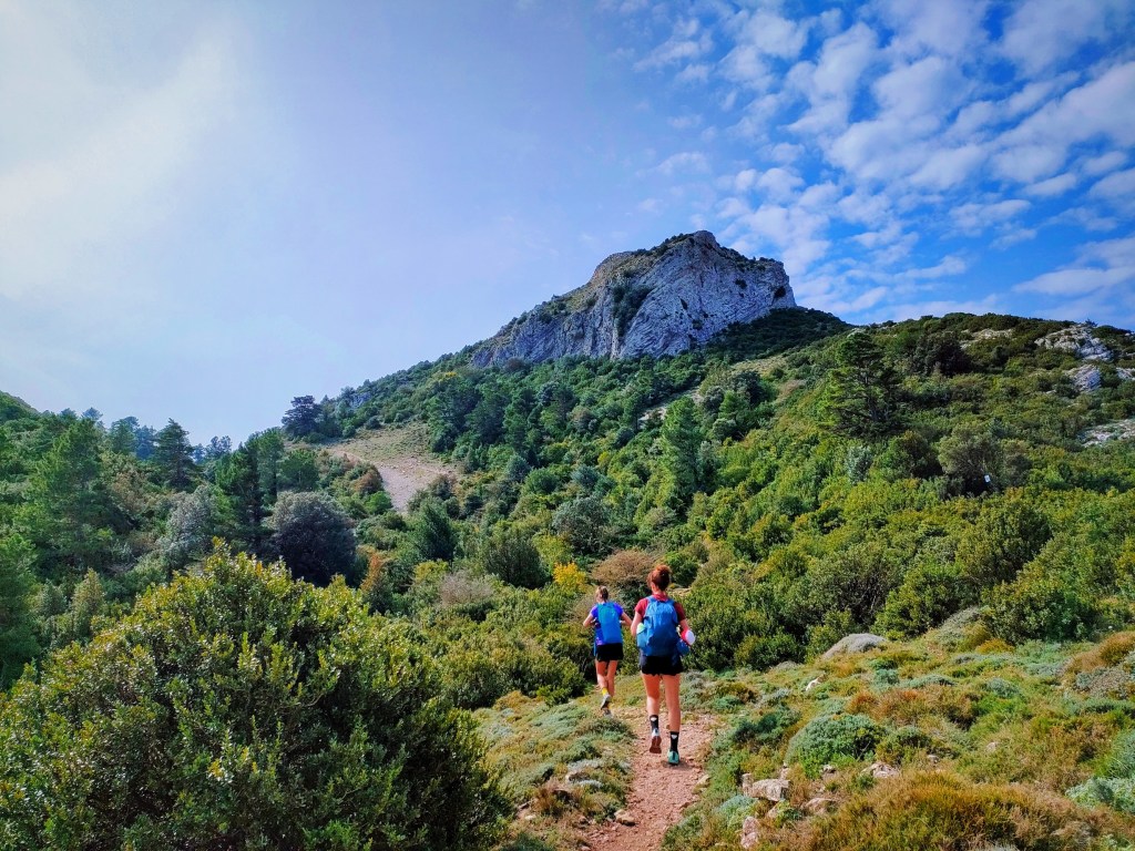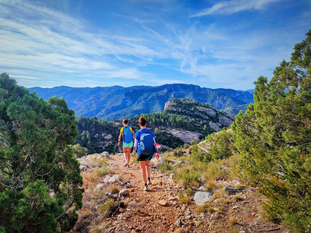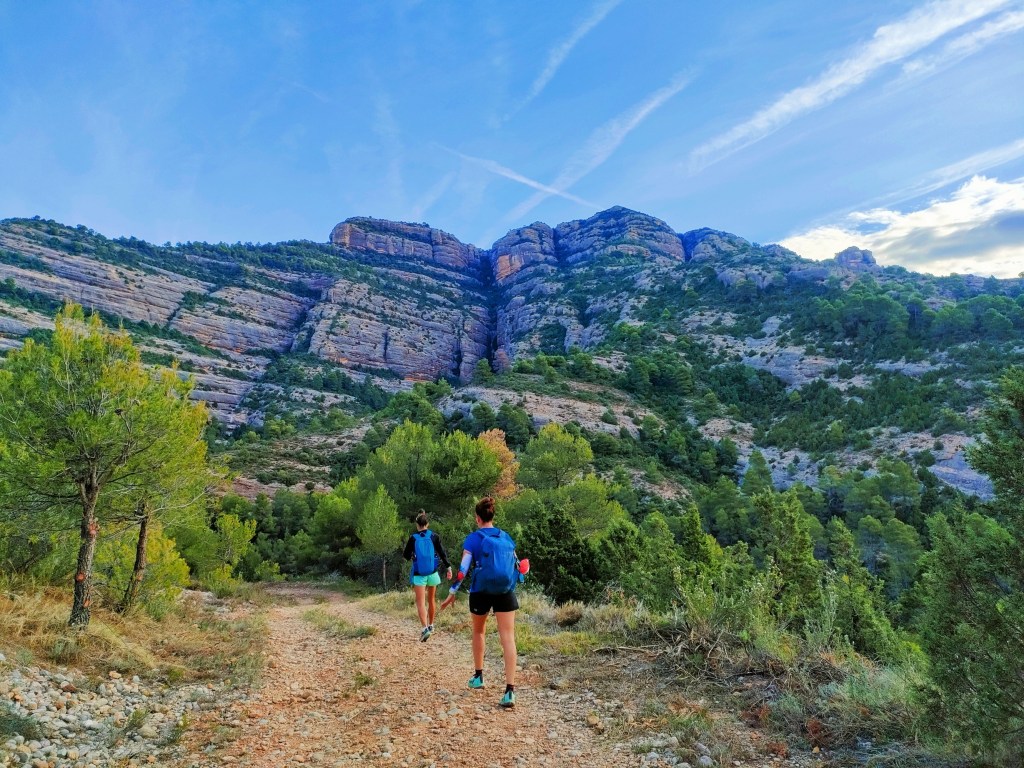 Alcanzaremos la cima de esta montaña, la única de la travesía, y bajaremos hacia el Coll de Pelele donde el sendero PR nos conducirá al río Algars. La bajada es siempre por bosque, muy bonita y disfrutona.