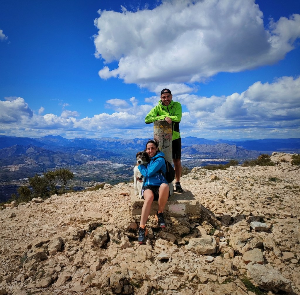 Hacemos cima sin mucha complicación y disfrutamos de las vistas al mar Mediterráneo y a la montaña alicantina.