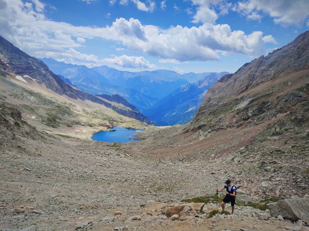 Sin dificultades, aunque con mucho esfuerzo, alcanzamos este collado y las vistas se abren al valle francés de Pouchergues, precioso y alpino como pocos…