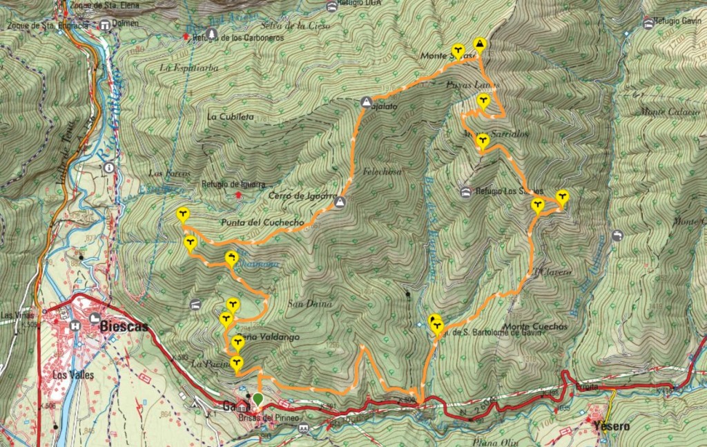 La ruta de hoy sigue en casi todo momento el recorrido de la carrera de montaña de las Crestas del Infierno en su distancia de media maratón, una carrera clásica del calendario aragonés que no se disputa desde el año 2022.
