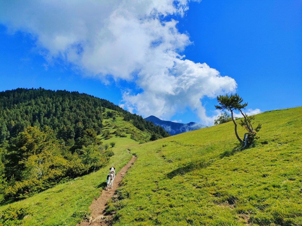 Poco a poco el terreno se vuelve menos abrupto y caminamos con más comodidad. En la cima del Puyas Lanas (2.099 m), cima secundaria al Sur del Sarasé, nace un senderillo que ya seguiremos de forma cómoda.