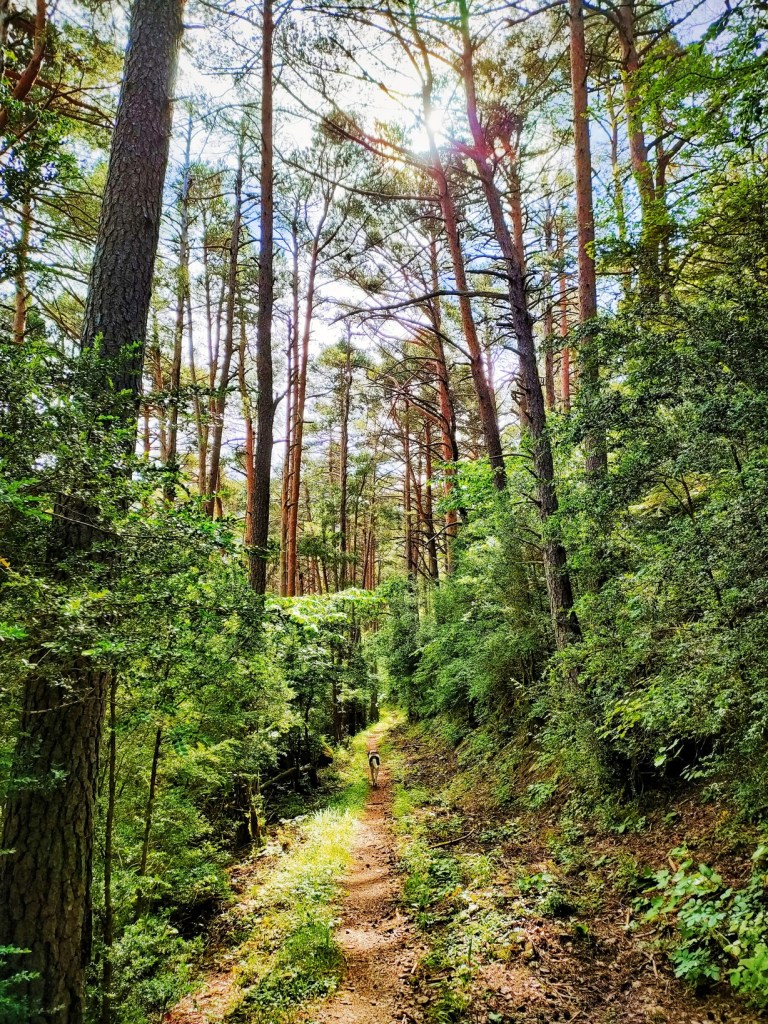 Un nuevo tramo de sendero muy corto nos dejará en una pista forestal que seguiremos de manera breve hasta dar a mano derecha con el sendero que se mete de lleno en El Cajigar, un fantástico bosque mixto por el que comenzamos a tomar altura sin descanso.