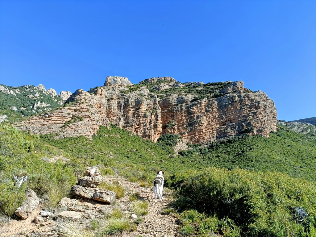 Ganaremos metros de forma rápida y cruzaremos el barranco de la Cobeta donde hay una soga que nos ayuda en un fácil destrepe. Seguiremos ascendiendo dejando a mano izquierda la Punta Sopilata (1.143 m) y el famoso Salto de Roldán.