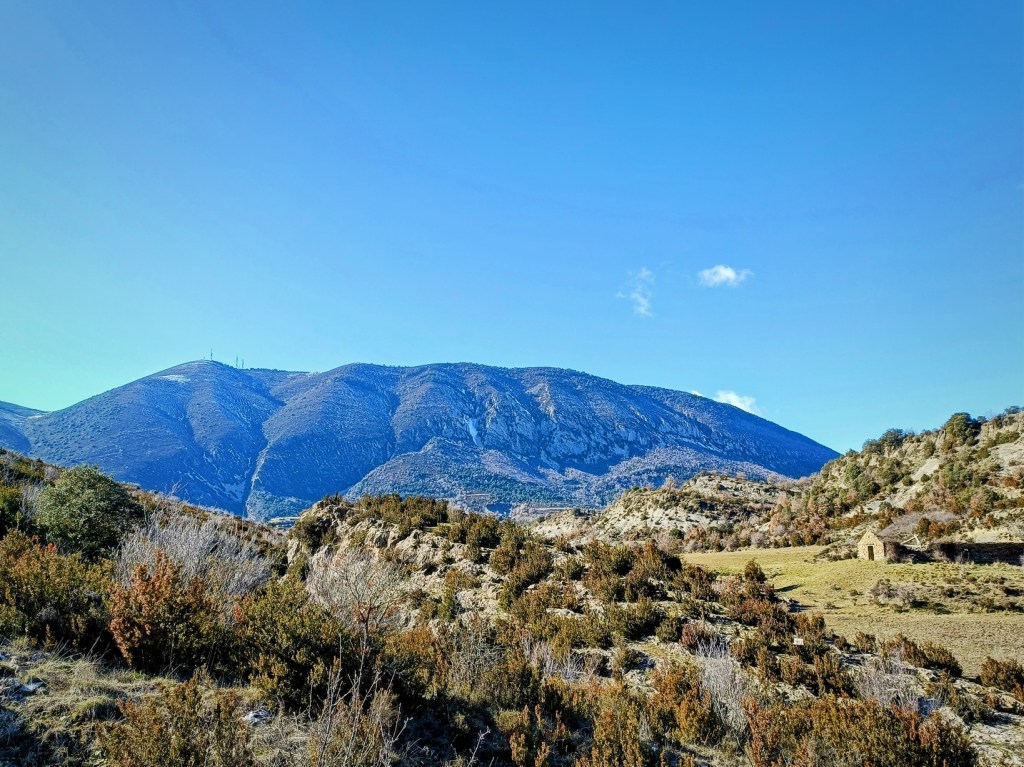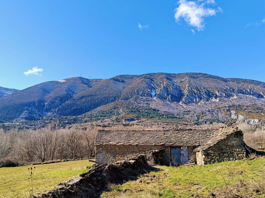 Poco después, tras subir una cuesta, nos toparemos con la Pardina Ascaso, una gran casona en ruinas que se encuentra en medio del monte. Desde ella se obtienen unas vistas muy buenas hacia la sierra Gabardiella.
