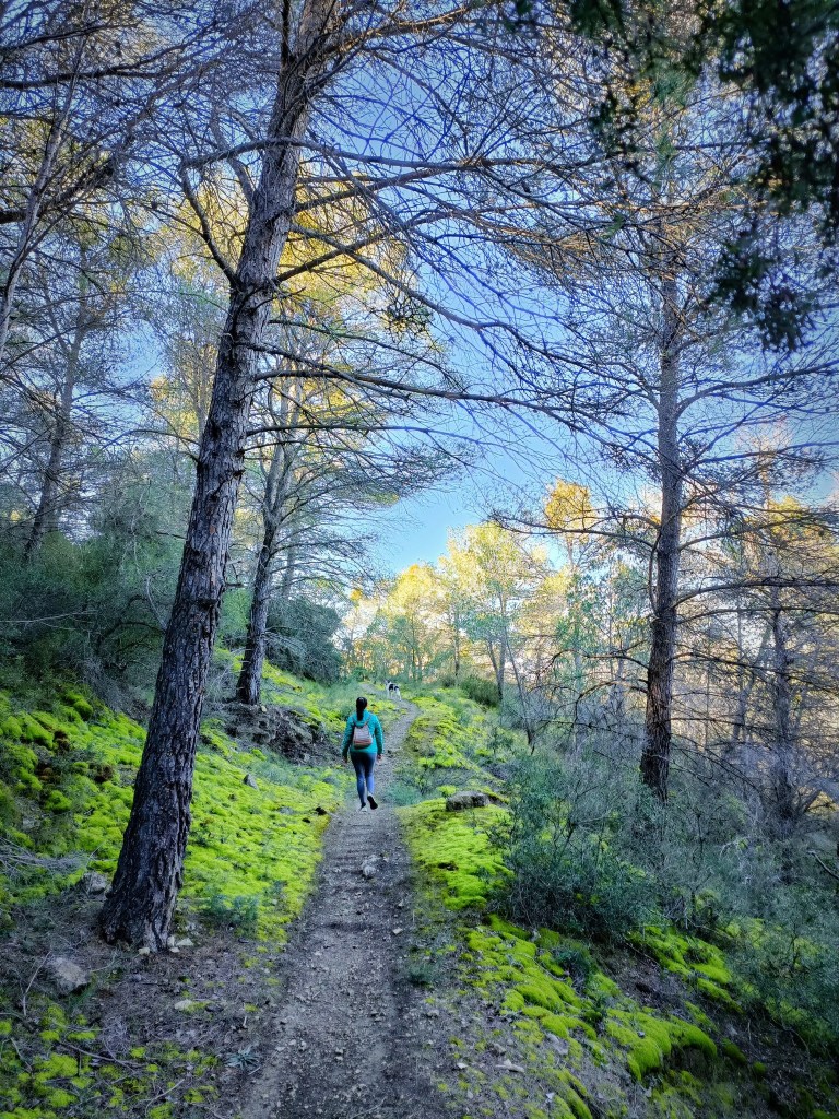 La senda sorprende desde el primer minuto. El camino es ancho y muy cómodo y apenas gana o pierde altura. Discurre por toda la umbría de la sierra, unos 100 metros por debajo de la línea de cumbres y la vegetación es frondosa, abundante y repleta de humedad. El musgo se encuentra a ambos lados del camino y, por momentos, parece que estamos en un sendero del Pirineo.