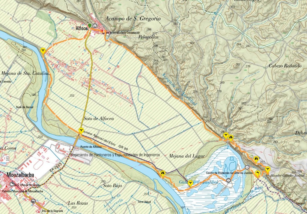 En la ruta de hoy realizaremos una circular partiendo del pueblo de Alfocea. A través de senderos muy bien conservados nos acercaremos al Galacho de Juslibol para visitar los diferentes miradores situados encima del Escarpe del Ebro. La vuelta a Alfocea la realizaremos por los senderos de pescadores que hay en los sotos cercanos al río.